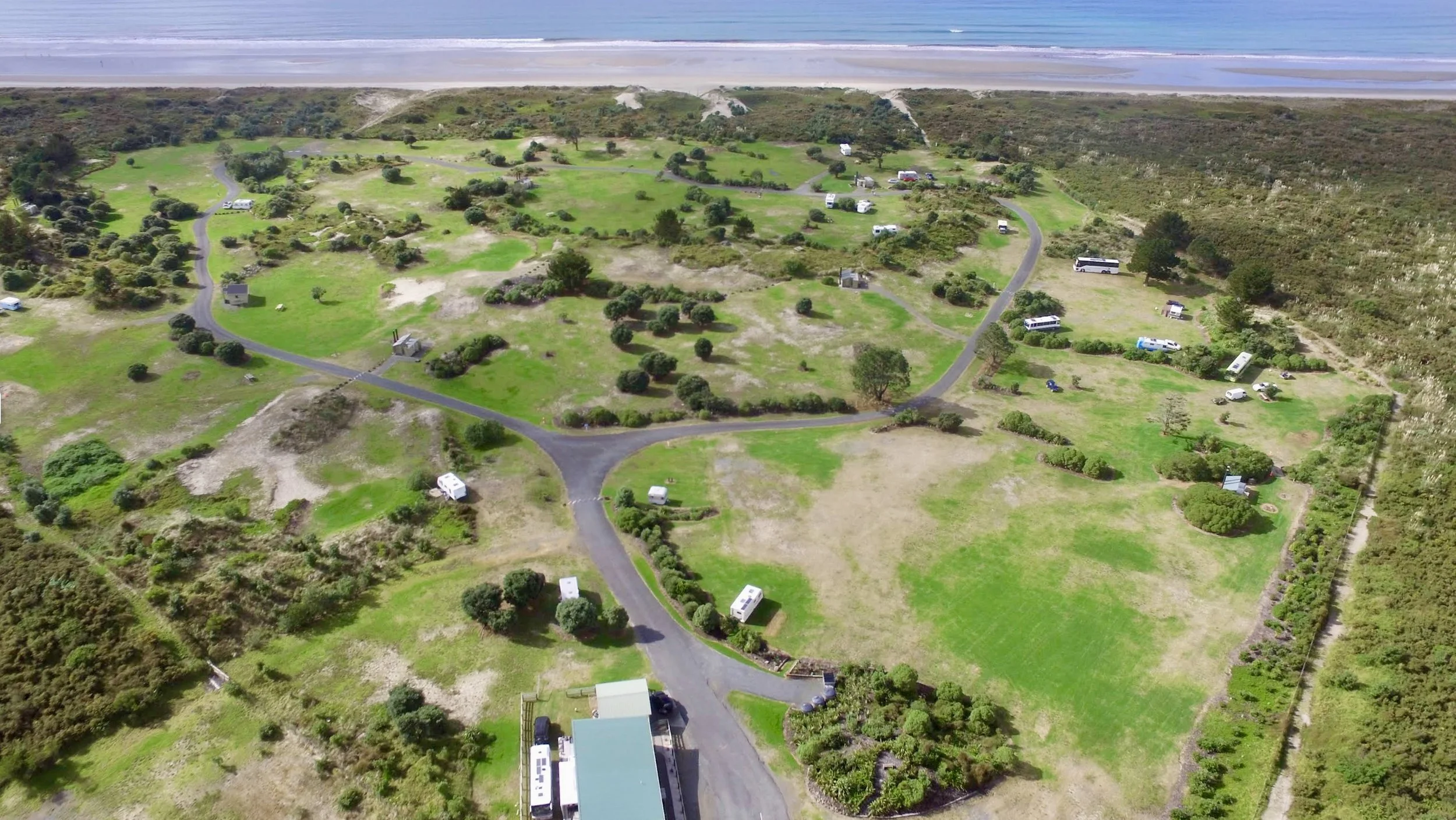 Aerial View of Uretiti Beach DOC Campsite